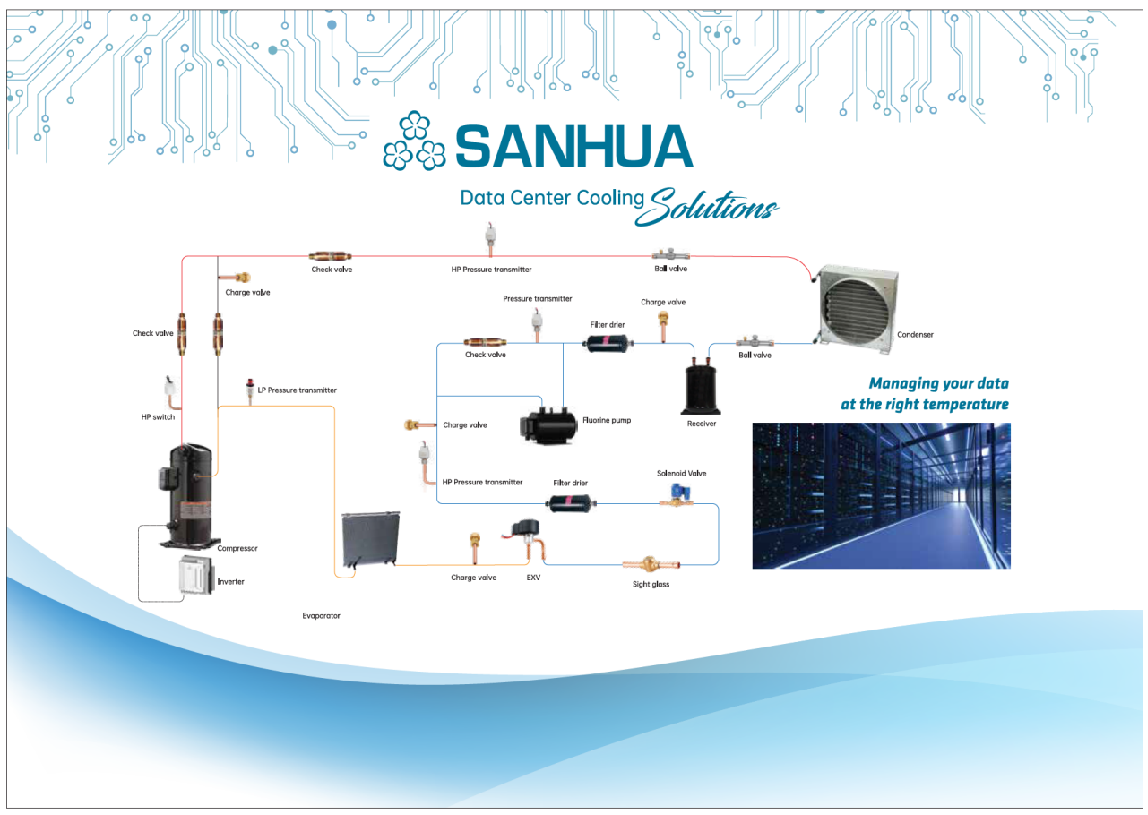 With the development of digitalization, the scale of data centers continues to expand, and equipment density and energy consumption continue to increase, the performance of the cooling system directly affects the reliability and operating costs of data centers. The MCHE heat pipe backplate heat exchanger, which is lightweight, has high heat transfer efficiency and low refrigerant ge, is a widely adopted solution today. However, in er to further reduce the PUE value of the data center, the liquid cooling system has gradually become a mainstream solution, and SANHUA plate heat exchanger has made a grand debut, especially in the CDU water-water heat exchange applications, SANHUA's S27 and S200 are popular choices, playing a key role in the liquid cooling system.